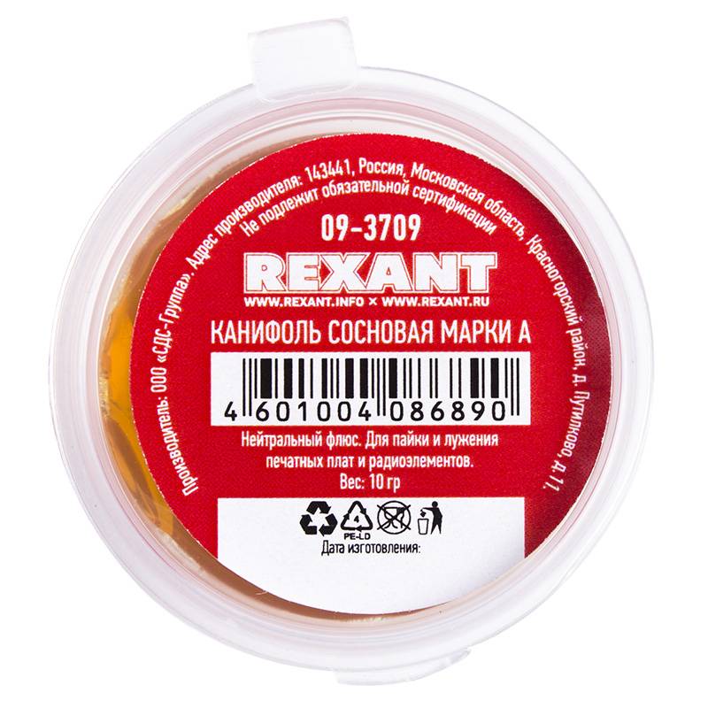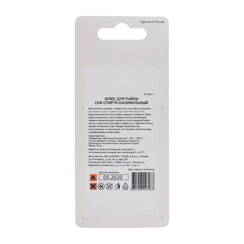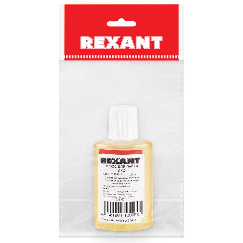 Флюс для пайки REXANT, СКФ (спирто-канифольный), 30 мл, в индивидуальной упаковке