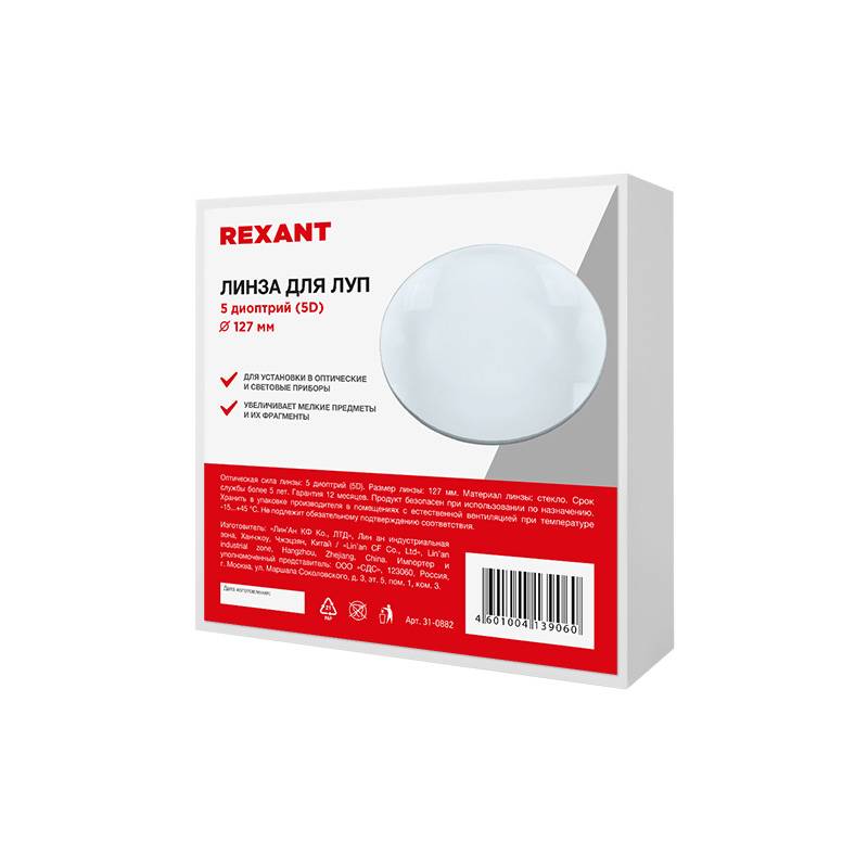 Линза 5 диоптрий (5D), Ø 127 мм, для луп с подсветкой REXANT