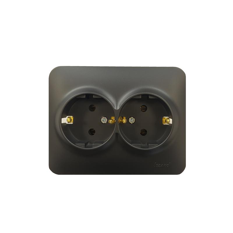 Розетка 2-м СП Karina 16А IP20 без заземл. термопласт черн. бархат LEZARD 707-4200-128B