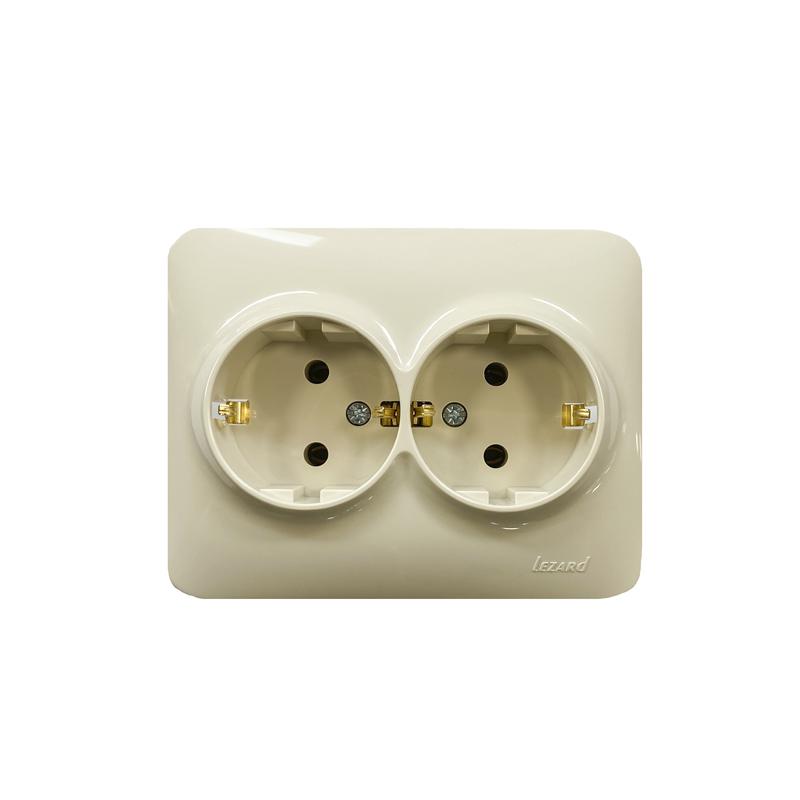 Розетка 2-м СП Karina 16А IP20 без заземл. термопласт крем. LEZARD 707-0300-128B