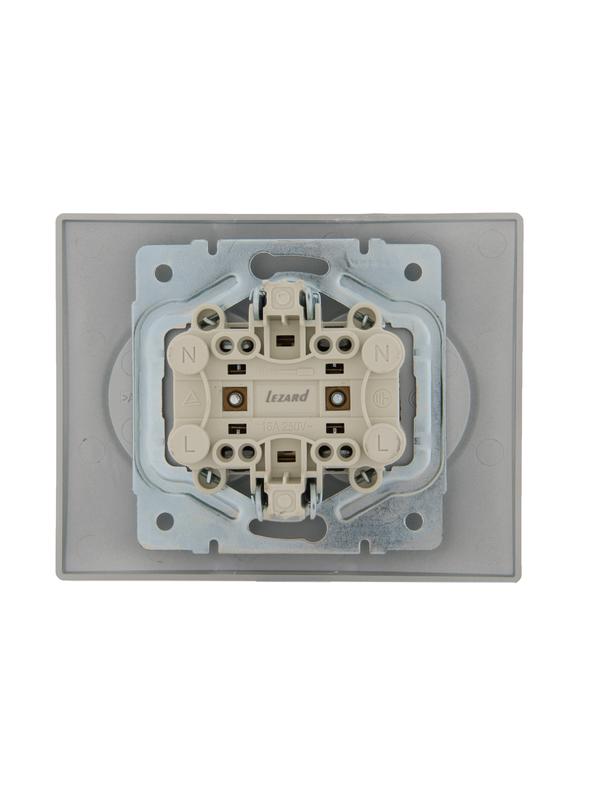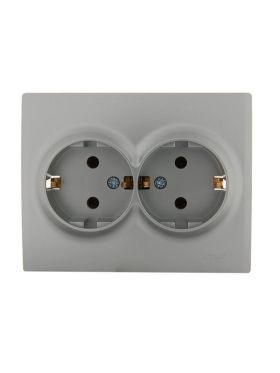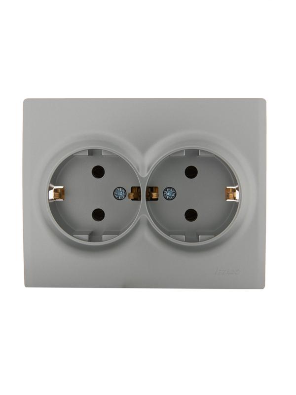 Розетка 2-м СП Karina с заземл. термопласт матов. серебр. LEZARD 707-4300-127B