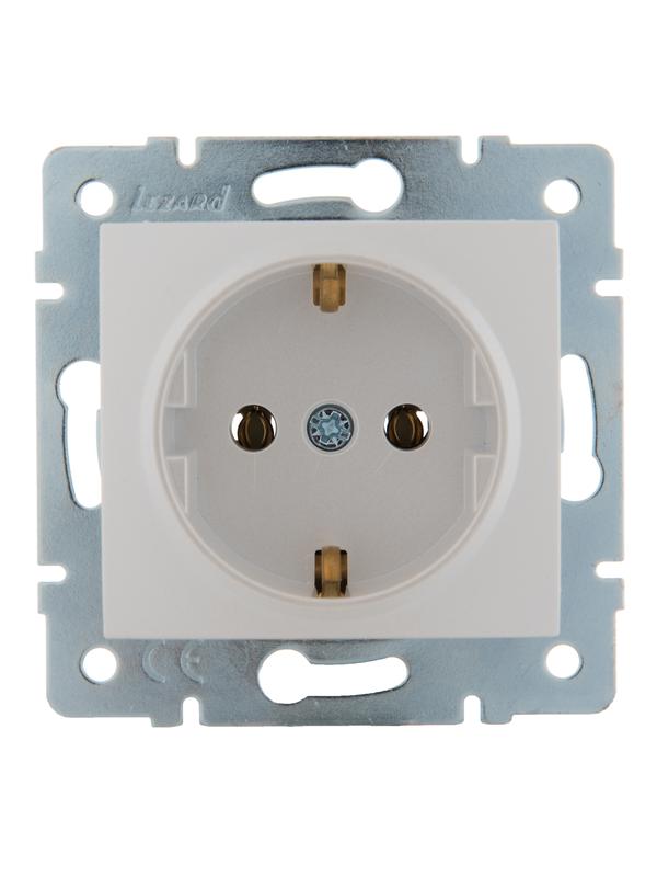 Розетка 1-м СП Karina с заземл. с крышкой термопласт механизм бел. LEZARD 707-0288-123B