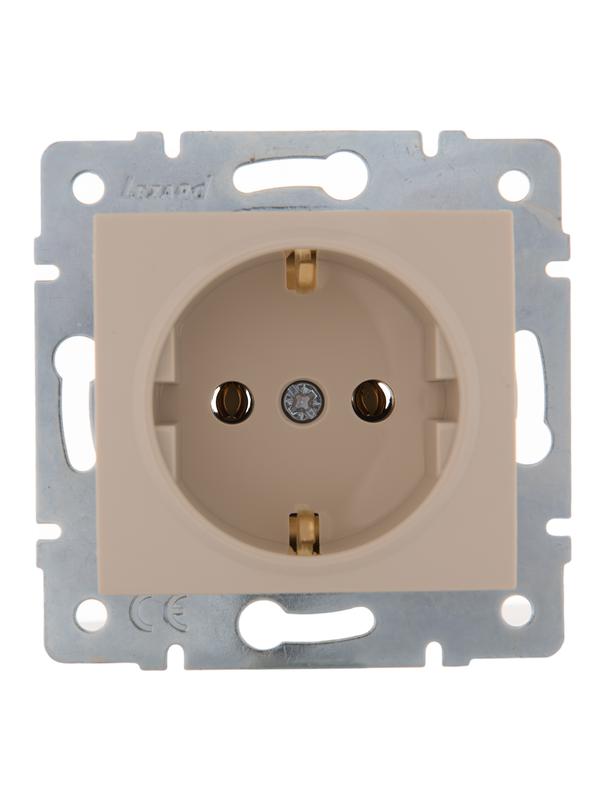 Розетка 2-м Karina Life с заземл. ПБТ крем. LEZARD 708-0300-127B