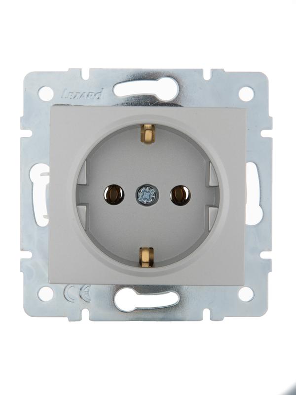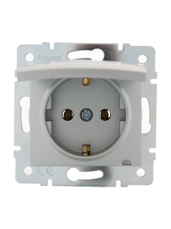 Розетка 1-м СП Karina с заземл. термопласт механизм матов. серебр. LEZARD 707-4388-122B