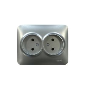 Розетка 2-м СП Karina 16А IP20 без заземл. термопласт матов. серебр. LEZARD 707-4300-128B