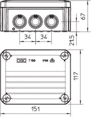 Коробка распределительная 150х116х67мм IP66 T100 10хM25 свет. сер. OBO 2007077