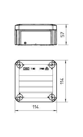 Коробка распределительная 114х114х57мм IP66 T60 OE закрыт. свет. сер. OBO 2007239