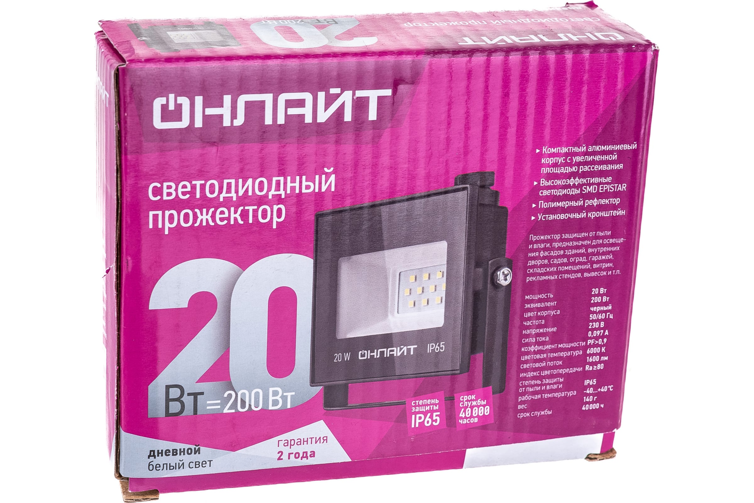 Прожектор светодиодный 61 949 OFL-20-6K-BL-IP65-LED 20Вт 6000К IP65 1600лм черн. ОНЛАЙТ 61949