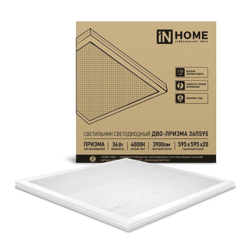 Светильник светодиодный ДВО-ПРИЗМА 36П595 36Вт 4000К 3900лм 110лм/Вт 595х595х19 IN HOME 4690612034546