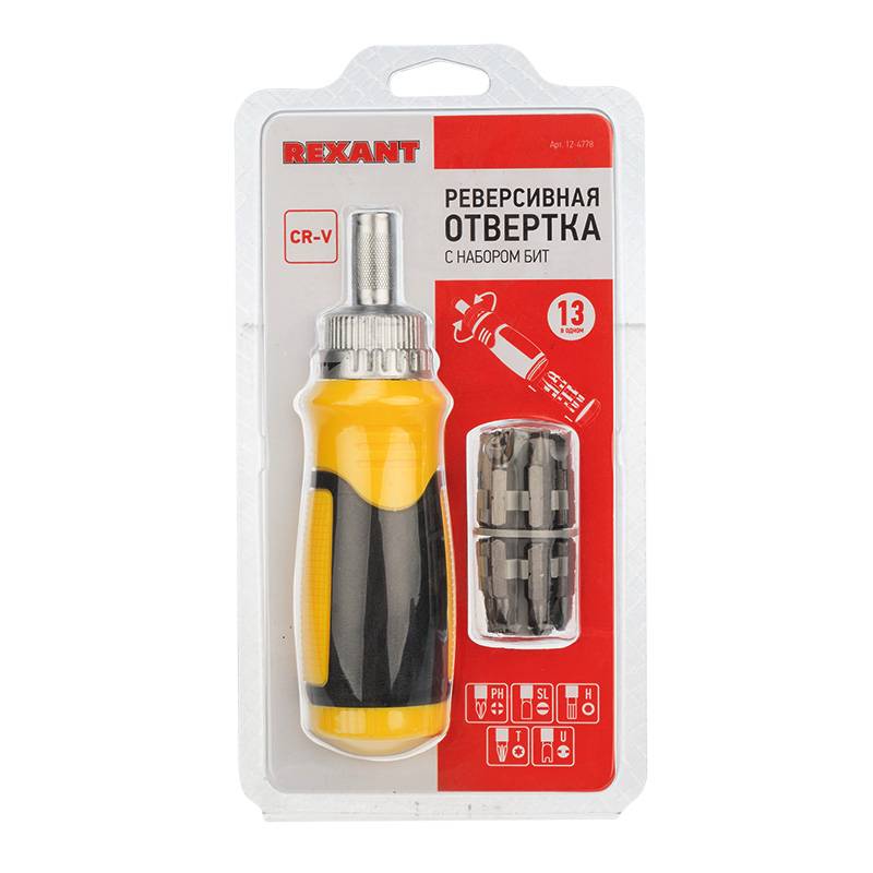 Отвертка реверсивная комбинированная, двухсторонний стержень 120 мм (крестовая PH 2, шлицевая SL 6 мм), двухкомпонентная рукоятка REXANT