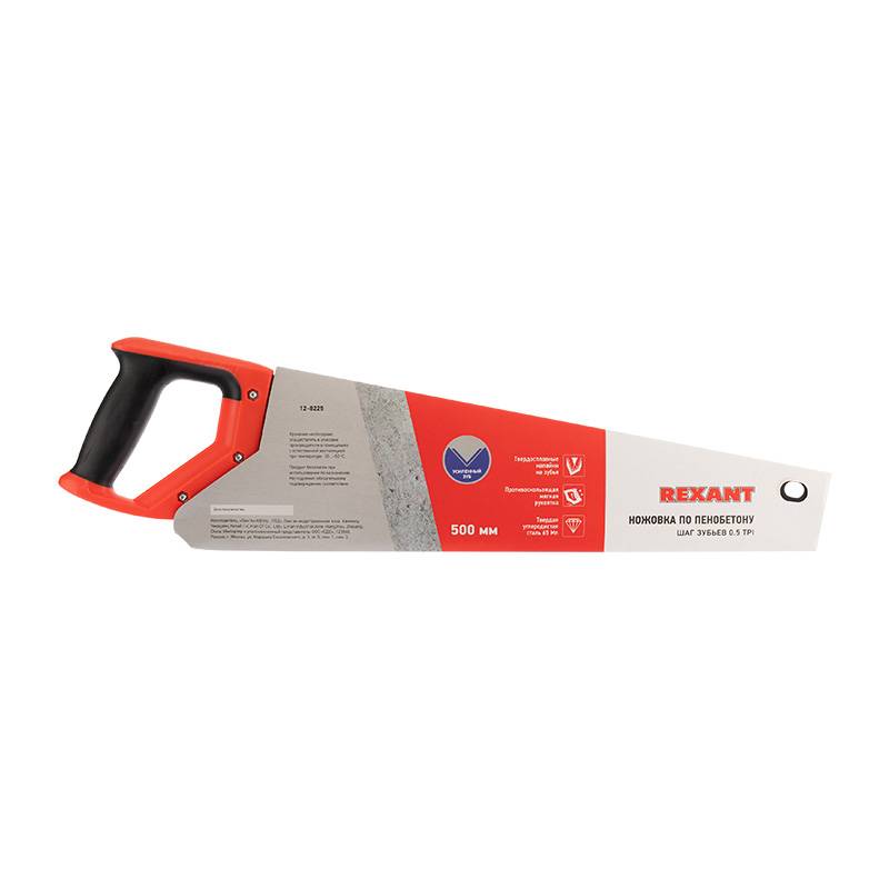 Ножовка по пенобетону 500 мм, защитное покрытие, твердосплавные напайки на зубья, двухкомпонентная рукоятка REXANT