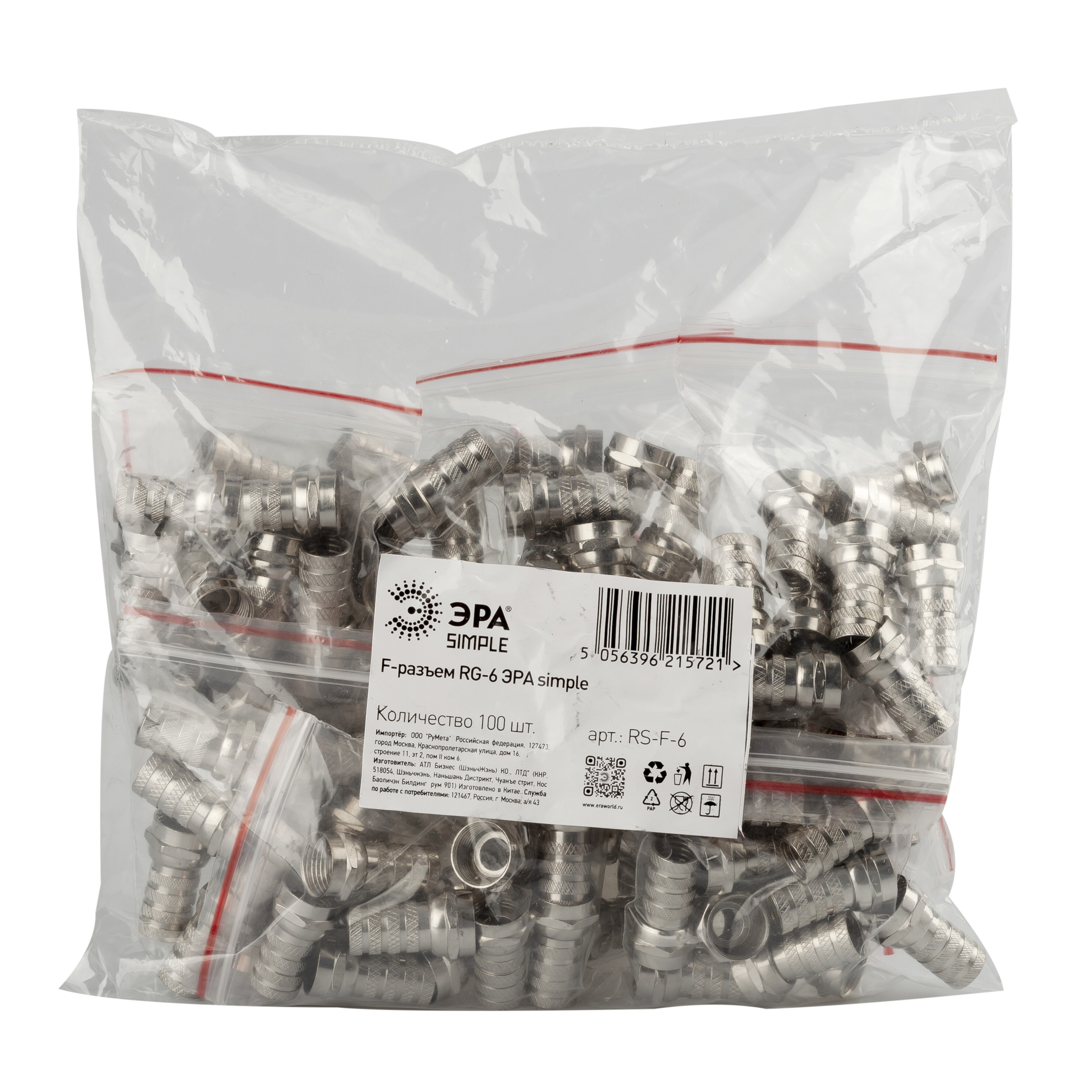 Переходник ЭРА Simple RS-A01-1 гнездо F-штекер TV 1 шт