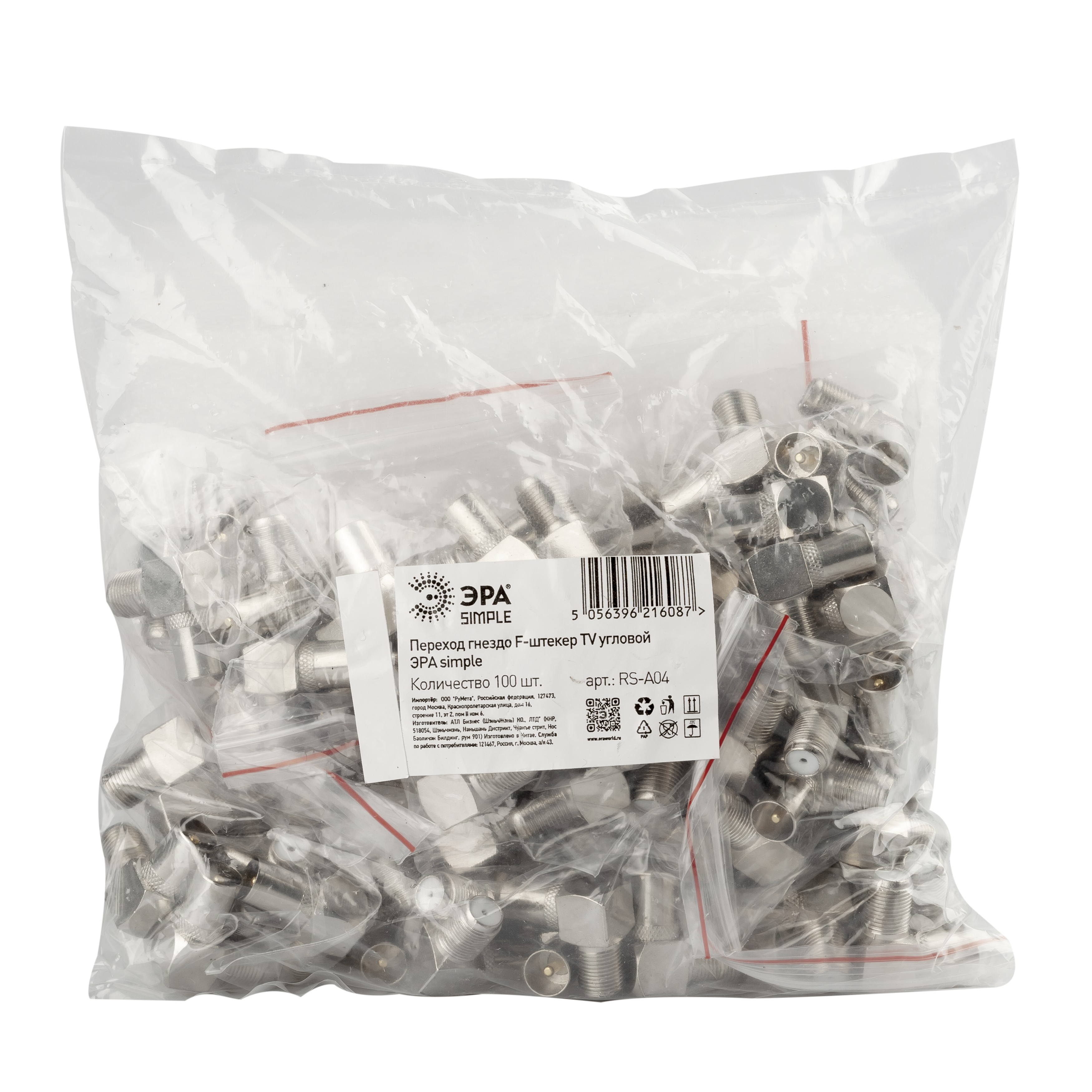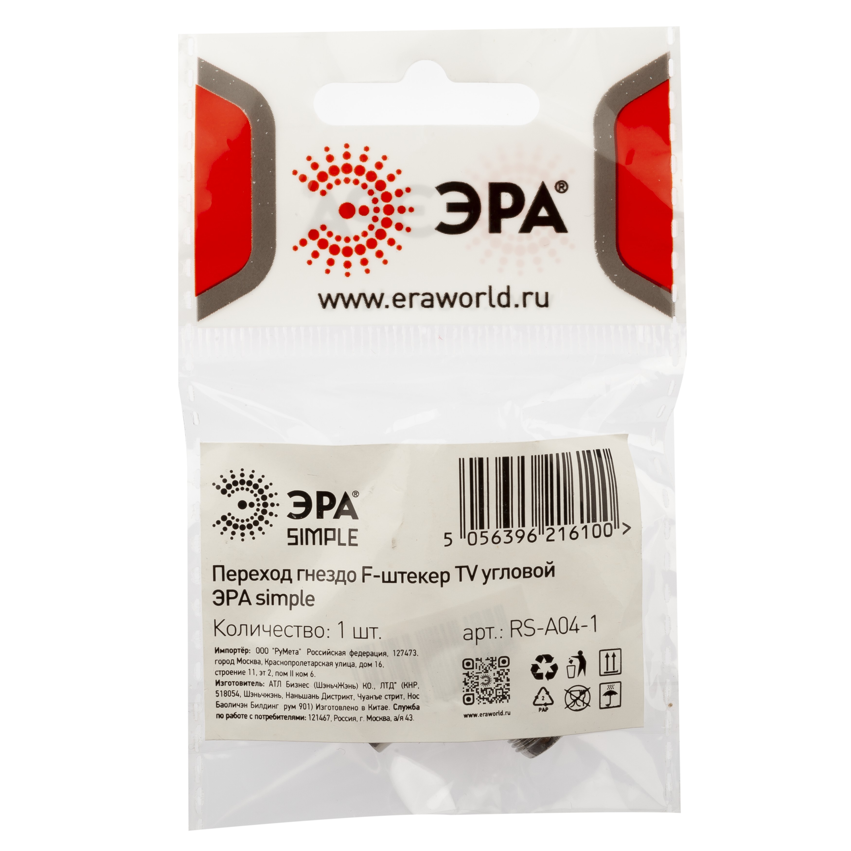 Переходник ЭРА Simple RS-A04-1 гнездо F-штекер TV угловой 1 шт