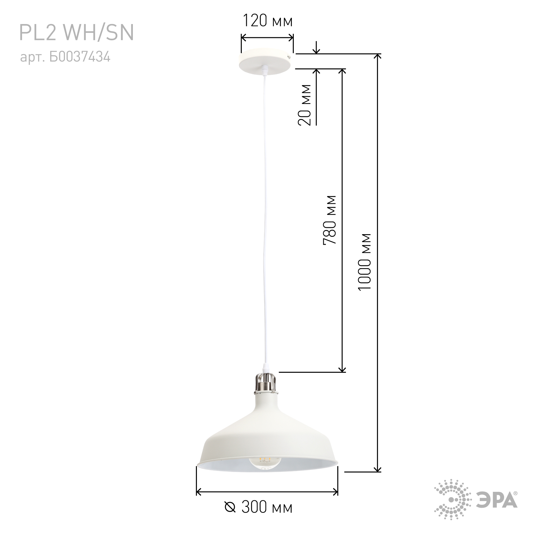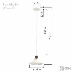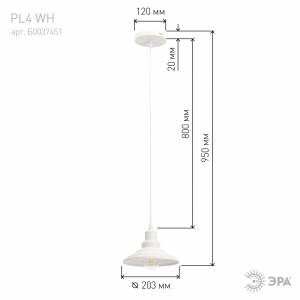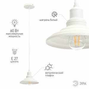 Светильник подвесной (подвес) ЭРА PL4 WH металл, E27, max 60W, высота плафона 130мм, подвеса 800мм, белый