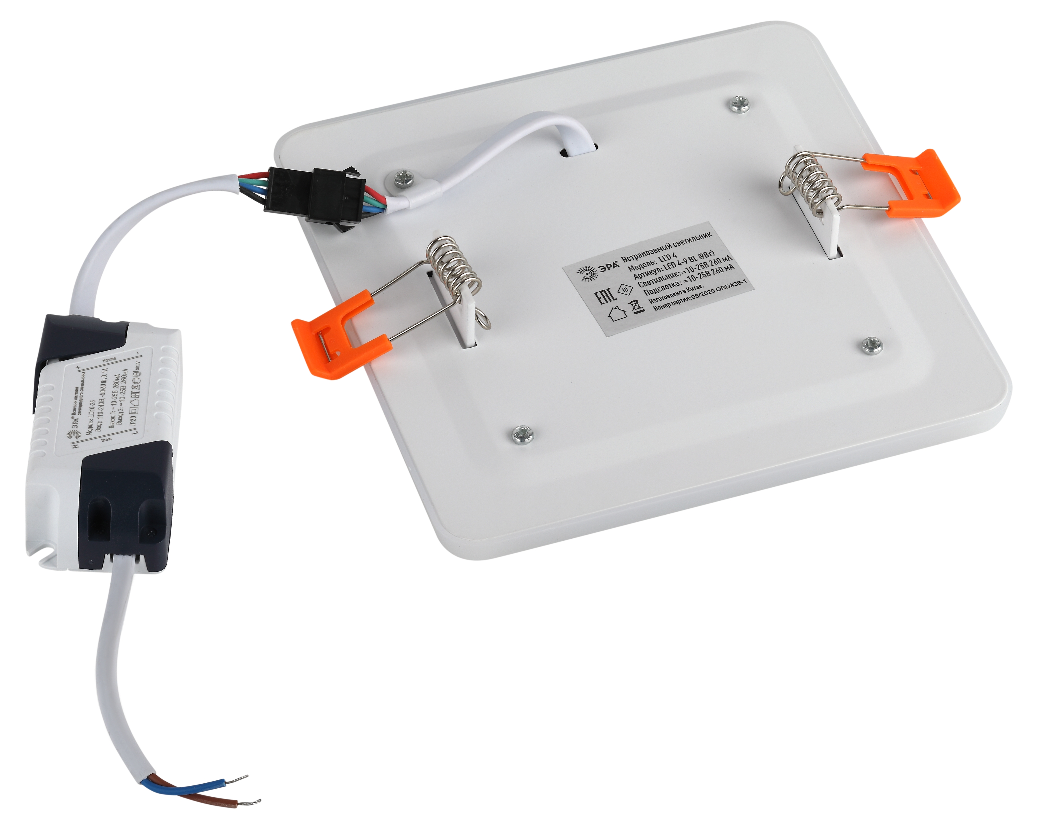LED 4-9 BL Светильник ЭРА светодиодный квадратный c cиней подсветкой LED 9W 540LM 220V 4000K (40/60
