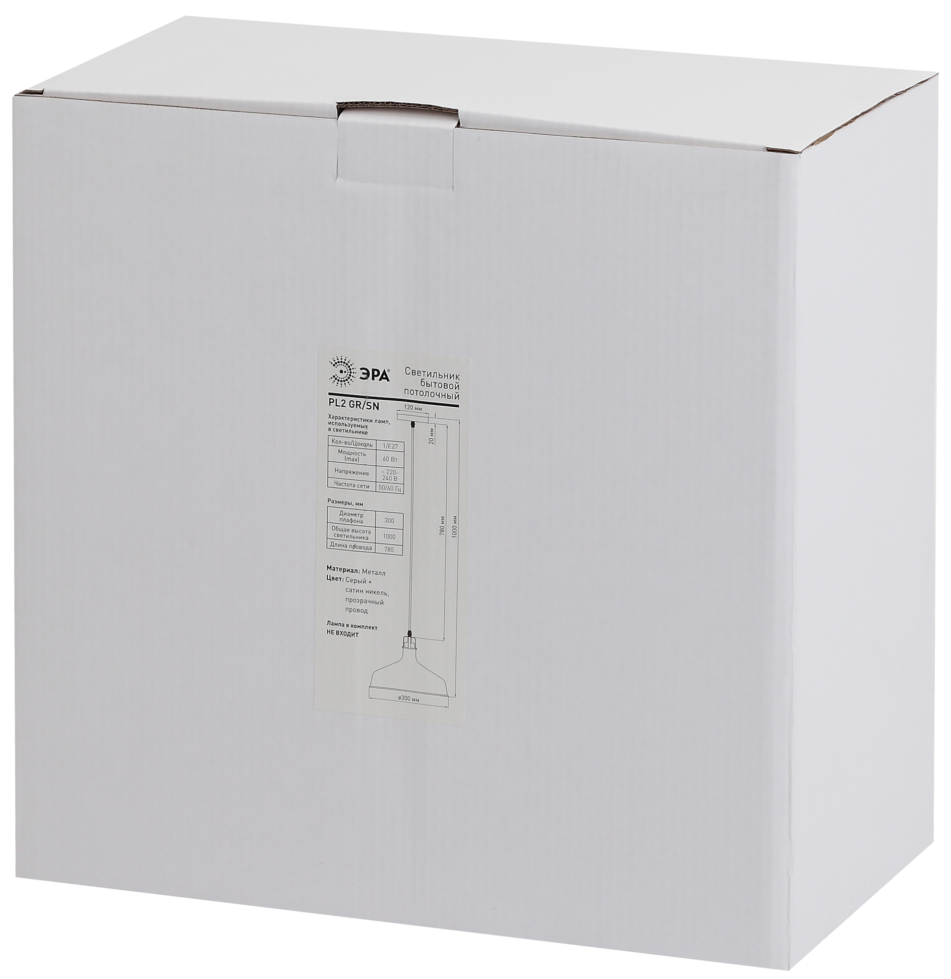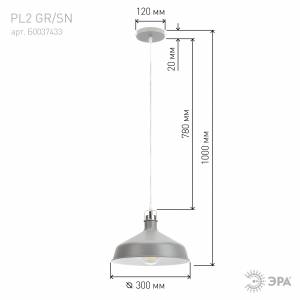 Светильник подвесной (подвес) ЭРА PL2 GR/SN металл, E27, max 60W, высота плафона 200мм, подвеса 780мм,серый/сатин никель