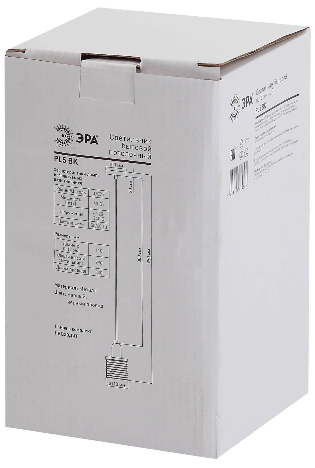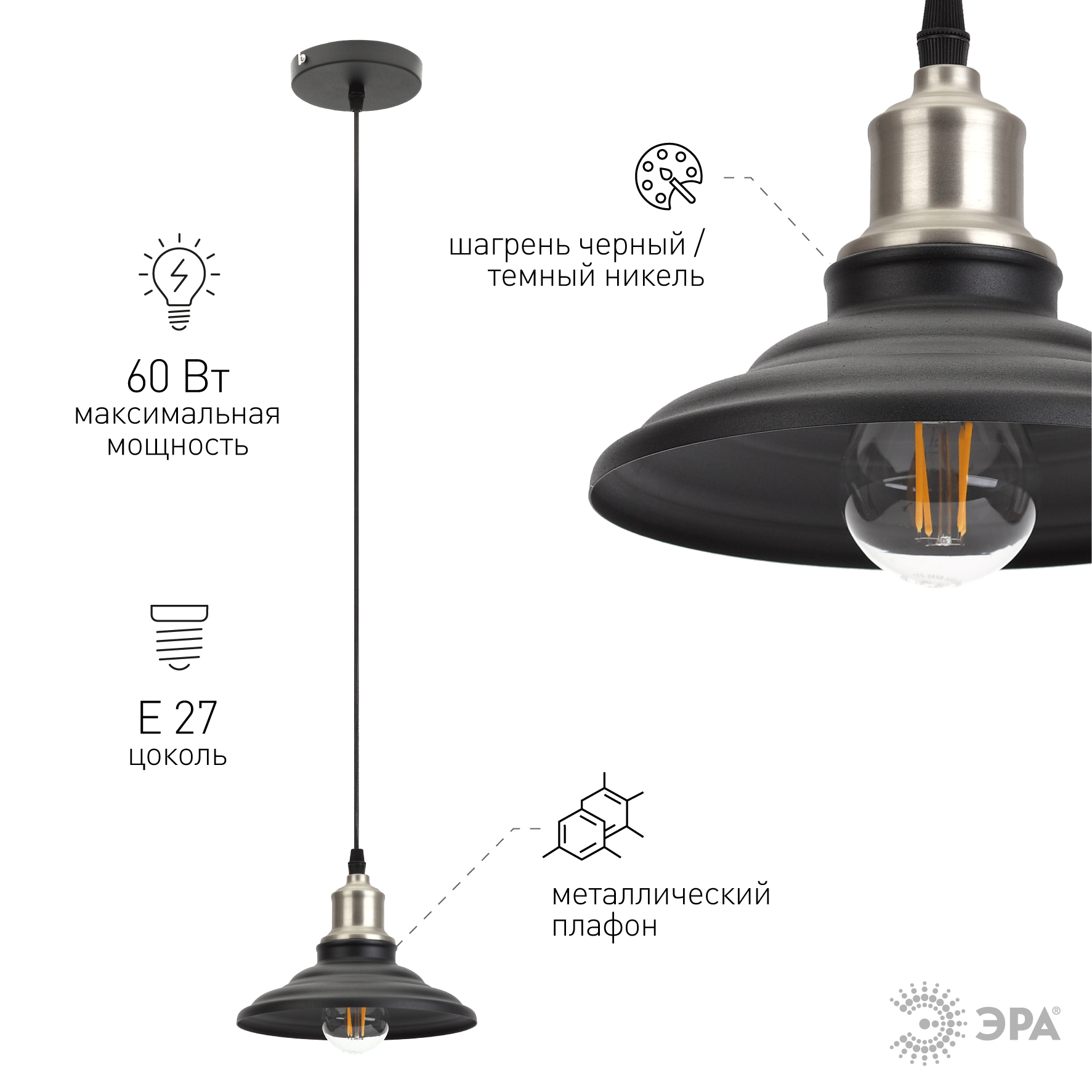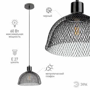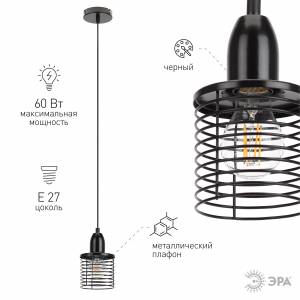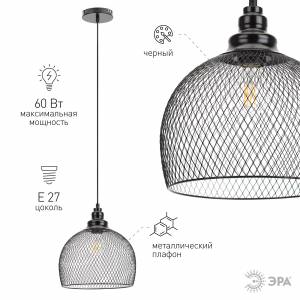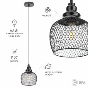 Светильник подвесной (подвес) ЭРА PL5 BK металл, E27, max 60W, высота плафона 170мм, подвеса 800мм, черный