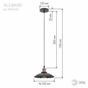 PL3 BK/RC Подвес ЭРА металл, E27, max 60W, d245 мм, шагрень черный/медь (10/160)