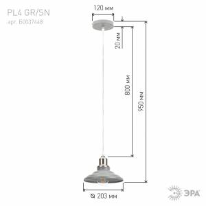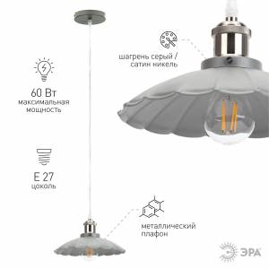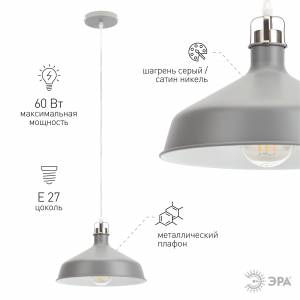Светильник подвесной (подвес) ЭРА PL4 GR/SN металл, E27, max 60W, высота плафона 130мм,подвеса 800мм, серый/сатин никель