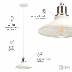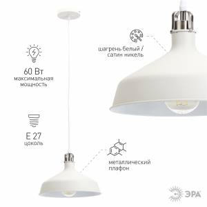 PL4 WH/SN Подвес ЭРА металл, E27, max 60W, d203 мм, шагрень белый/сатин никель (10/210)