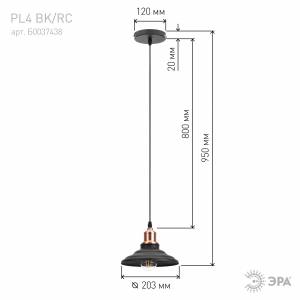 Светильник подвесной (подвес) ЭРА PL4 BK/RC металл, E27, max 60W, высота плафона 130мм, подвеса 800мм, черный/медь