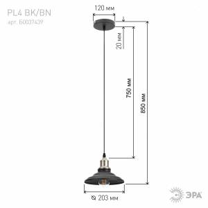 Светильник подвесной (подвес) ЭРА PL4 BK/BN металл,E27,max 60W,высота плафона 130мм,подвеса 800мм,черный/темный никель