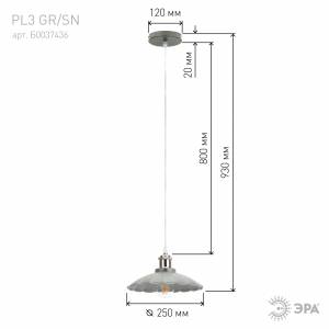 Светильник подвесной (подвес) ЭРА PL3 GR/SN металл, E27, max 60W, высота плафона 110мм, подвеса 800мм,серый/сатин никель