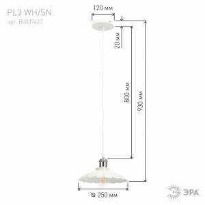 PL3 WH/SN Подвес ЭРА металл, E27, max 60W, d245 мм, шагрень белый/сатин никель (10/160)