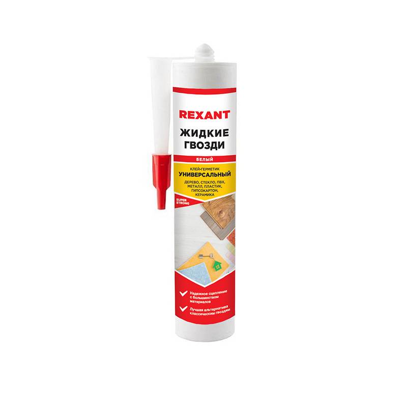 Клей-герметик жидкие гвозди REXANT акриловый универсальный 280 мл белый
