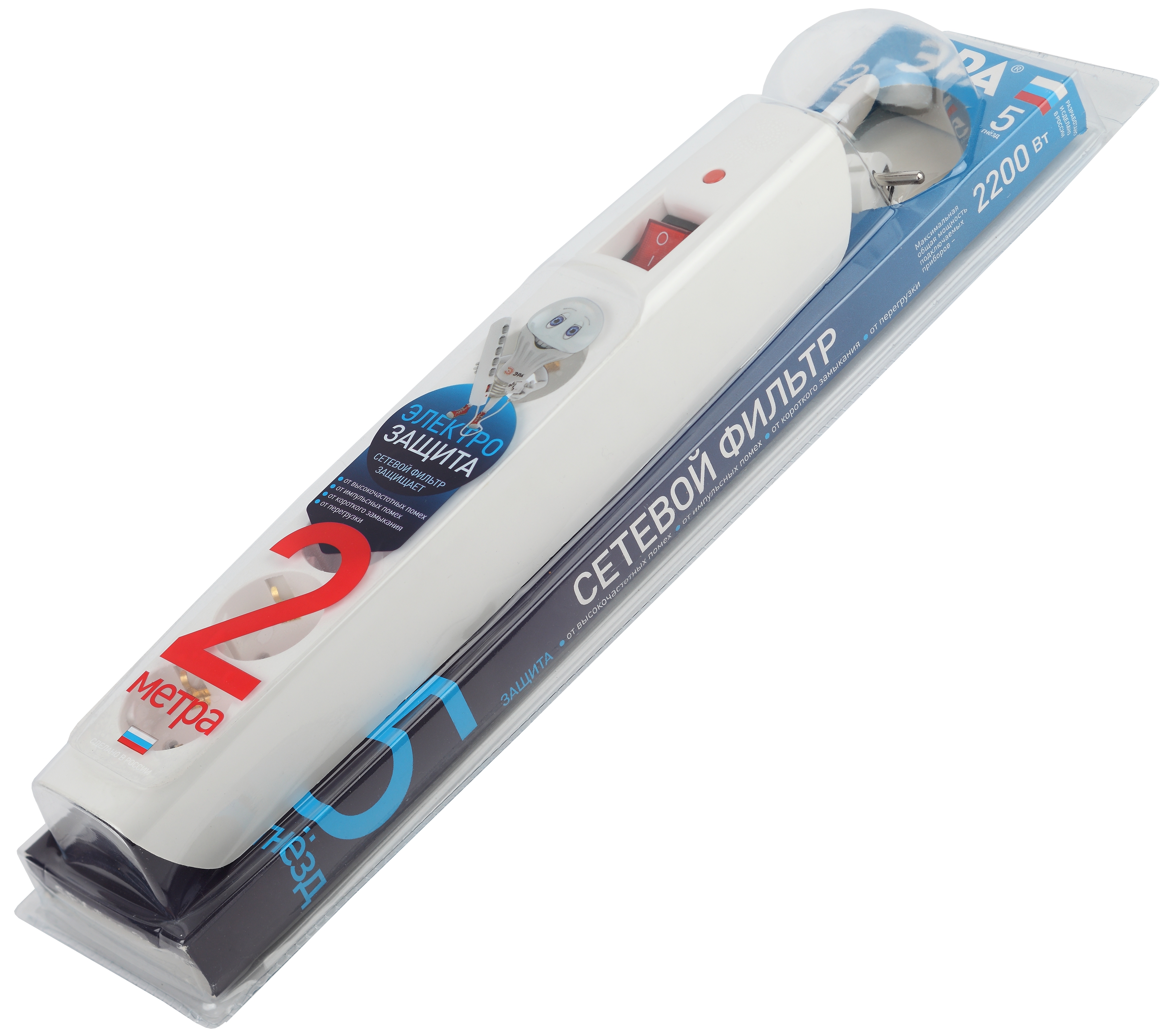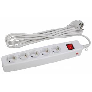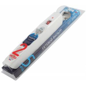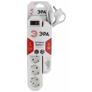 Сетевой фильтр ЭРА SFX-5es-2m-W с надежной защитой с заземлением с выключателем 5 розеток 2м 10А белый