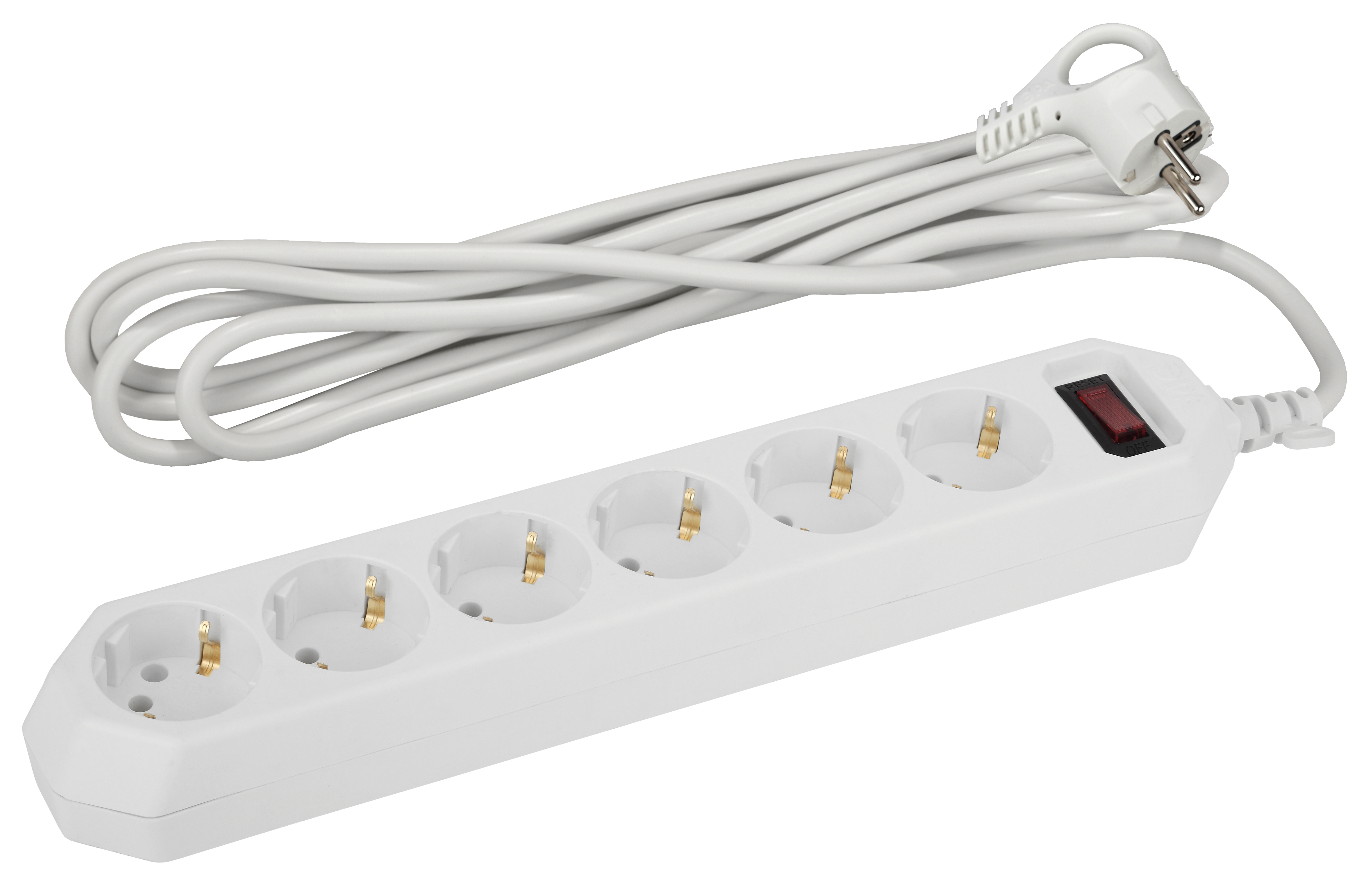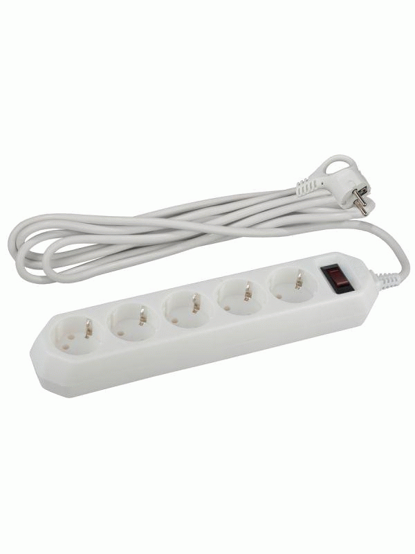 Сетевой фильтр ЭРА USF-6es-5m-W с базовой защитой с заземлением с выключателем 6 розеток 5м 10А белый