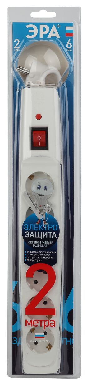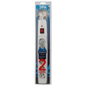 Сетевой фильтр ЭРА SFX-6es-2m-W с надежной защитой с заземлением с выключателем 6 розеток 2м 10А белый
