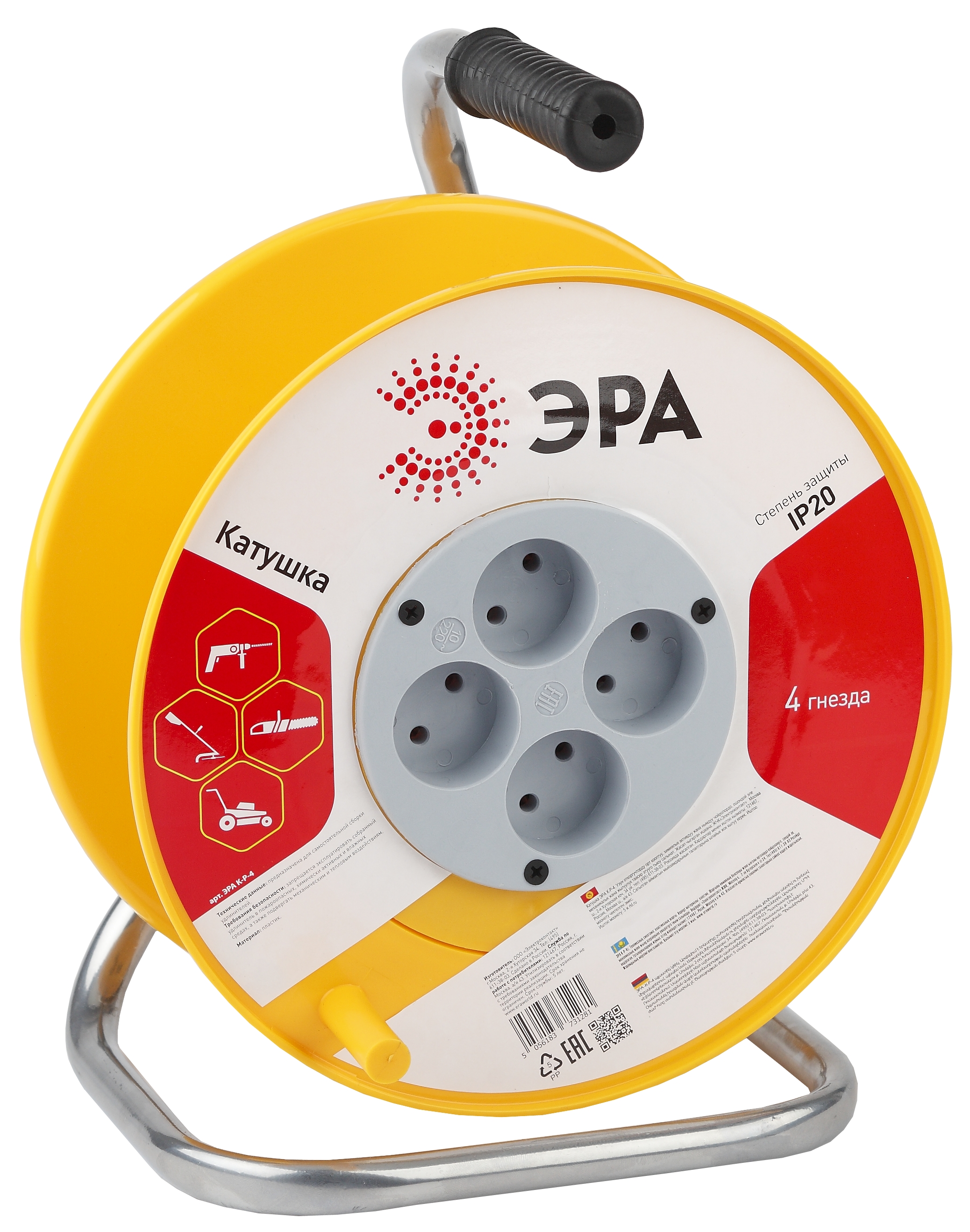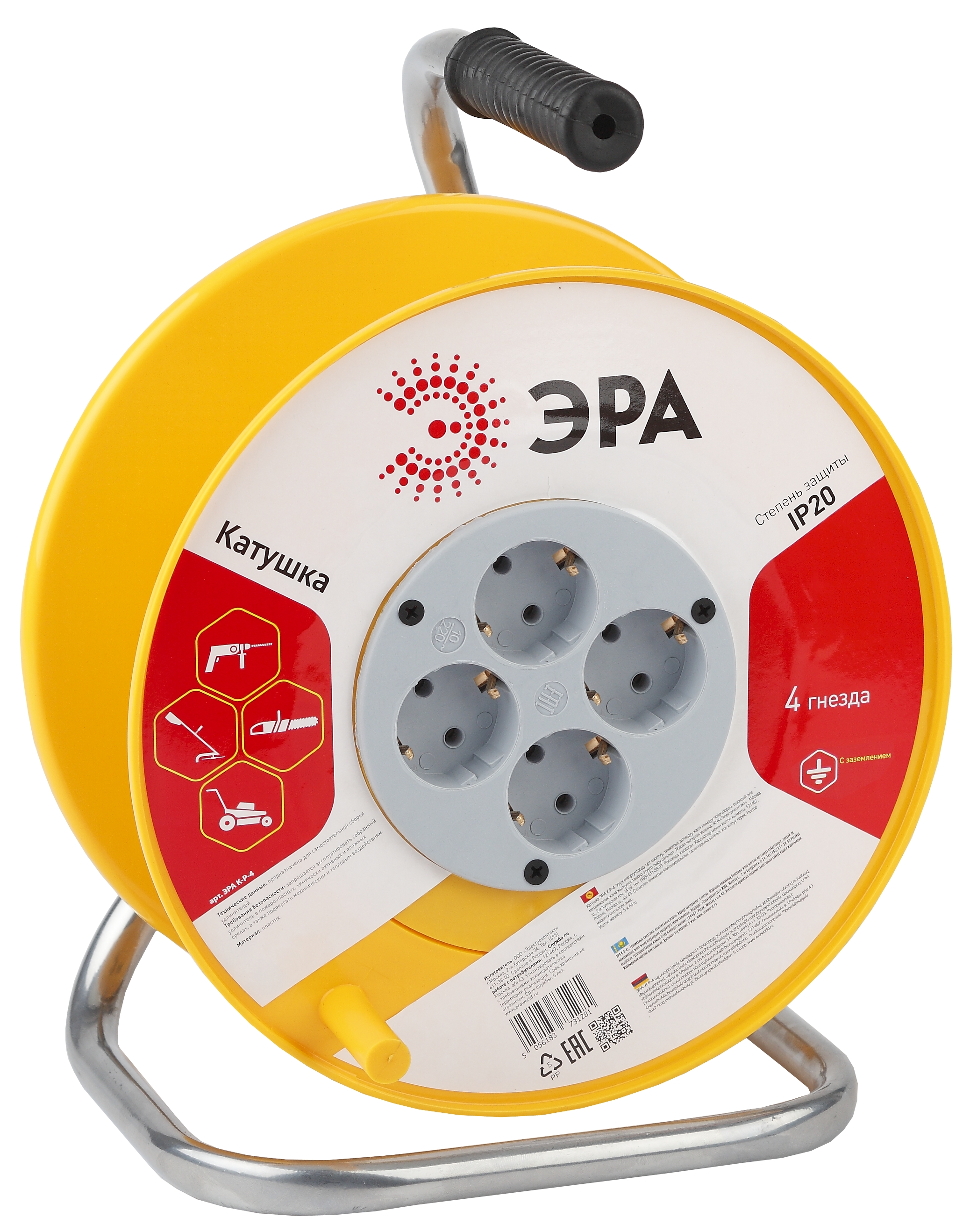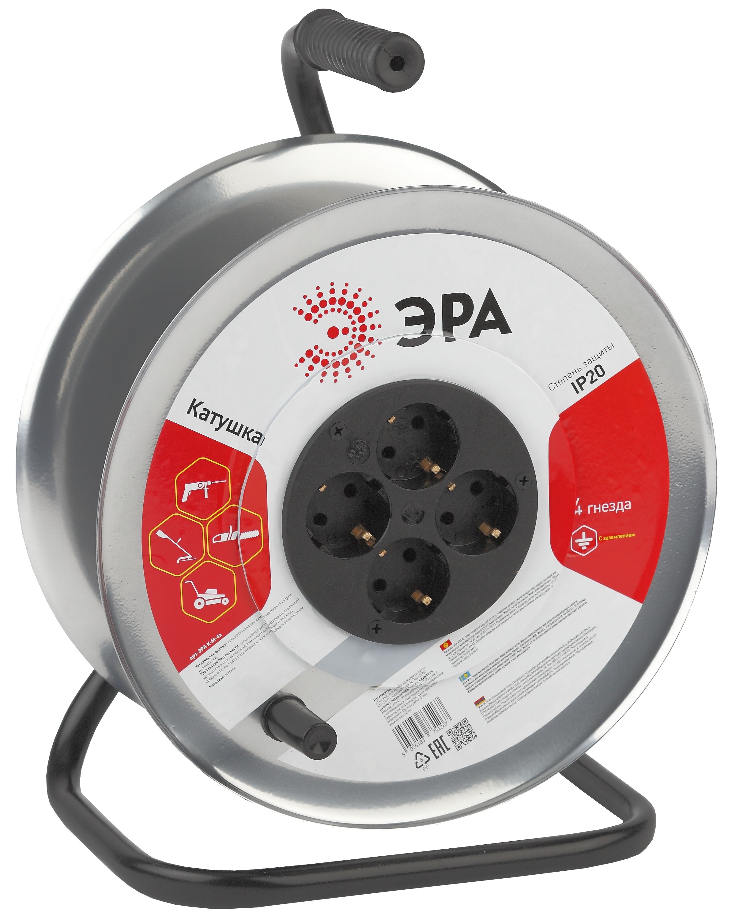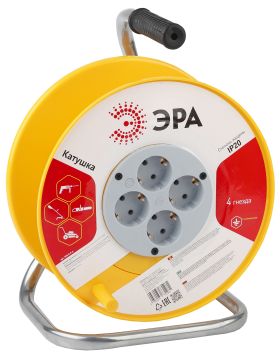 Удлинитель силовой ЭРА RMx-4es-3x2.5-40m-IP44(KG) на металлической катушке c заземлением 4 розетки 40м КГ 3х2.5мм2