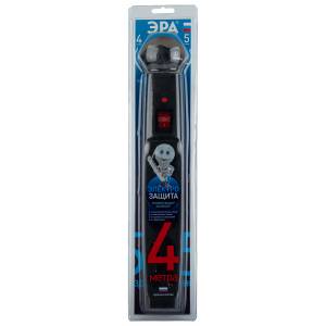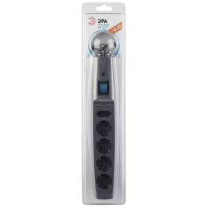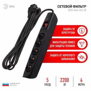 Сетевой фильтр ЭРА SFX-5es-4m-B с надежной защитой с заземлением с выключателем 5 розеток 4м 10А черный