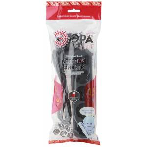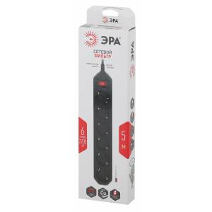 Сетевой фильтр ЭРА USF-6es-5m-B с базовой защитой с заземлением с выключателем 6 розеток 5м 10А черный