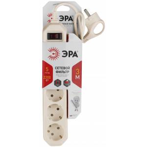 Сетевой фильтр ЭРА USF-5es-3m-I с базовой защитой с заземлением с выключателем 5 розеток 3м 10А слоновая кость