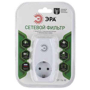 Сетевой фильтр ЭРА SF-1e-W с максимальной защитой с заземлением 1 розетка 16 А белый
