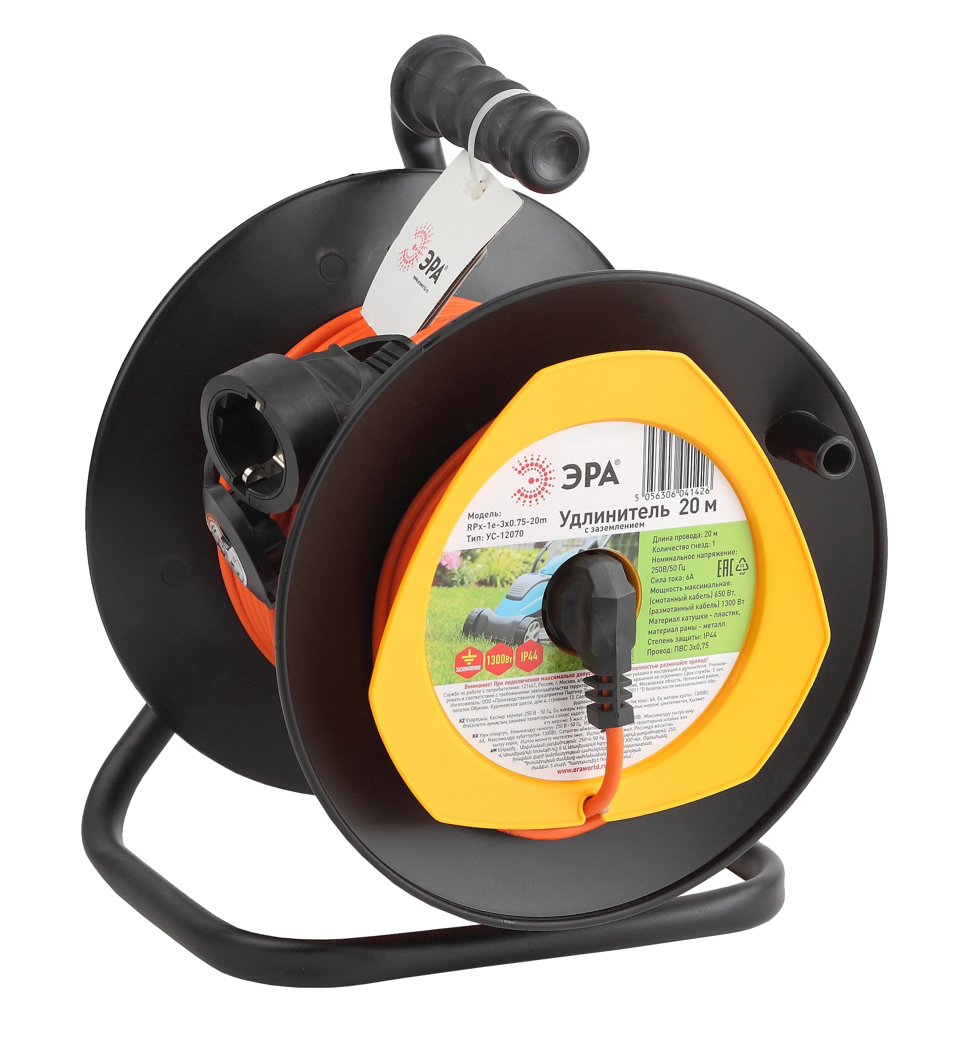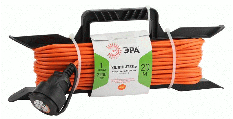 Удлинитель силовой ЭРА RPx-1e-3х0.75-20m для газонокосилки c заземлением 1 розетка 20м ПВС 3х0.75мм2