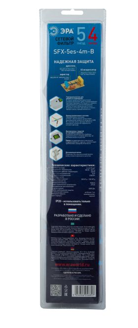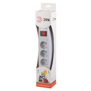 Сетевой фильтр ЭРА SFX-5es-4m-W с надежной защитой с заземлением с выключателем 5 розеток 4м 10А белый