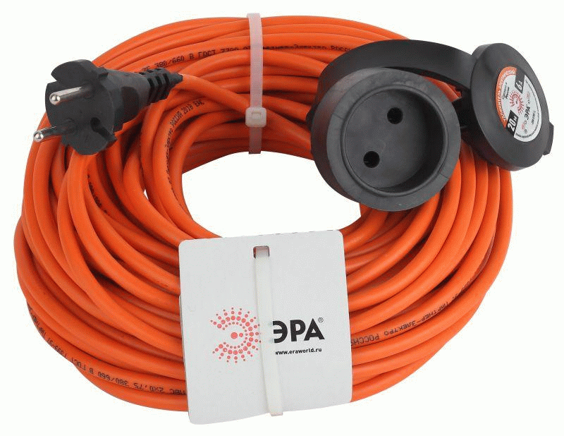 Удлинитель силовой ЭРА RPx-1-2x0.75-20m для газонокосилки без заземления 1 розетка 20м ПВС 2х0.75мм2