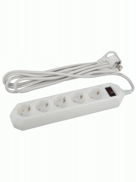 Удлинитель с сетевым фильтром 5х5м с заземл. 10А IP20 USF-5es-5m-W ПВС 3х0.75 с выкл. бел. Эра Б0019738