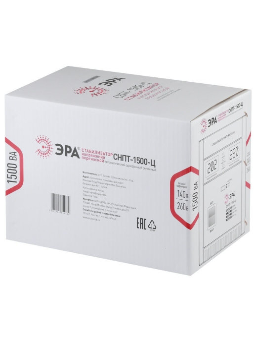 СНПТ-1500-Ц ЭРА Стабилизатор напряжения переносной, ц.д., 140-260В/220/В, 1500ВА (4/80)