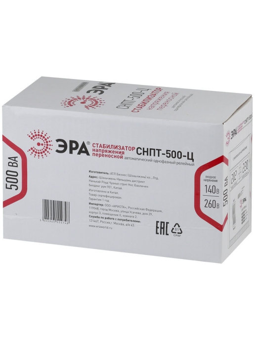 СНПТ-500-Ц ЭРА Стабилизатор напряжения переносной, ц.д., 140-260В/220/В, 500ВА (8/144)