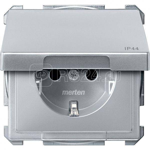 Механизм розетки 1-м СП Merten Aquadesign 16А IP44 с заземл. с крышкой сталь SchE MTN2414-4060