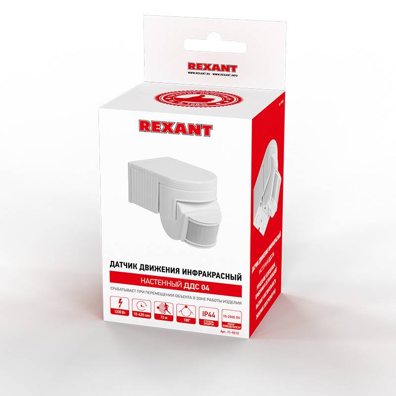 Датчик движения настенный ДДС 04, 180°, 1200 Вт,10-2000 Лк, 12 м, 10-420 сек. IP44 REXANT