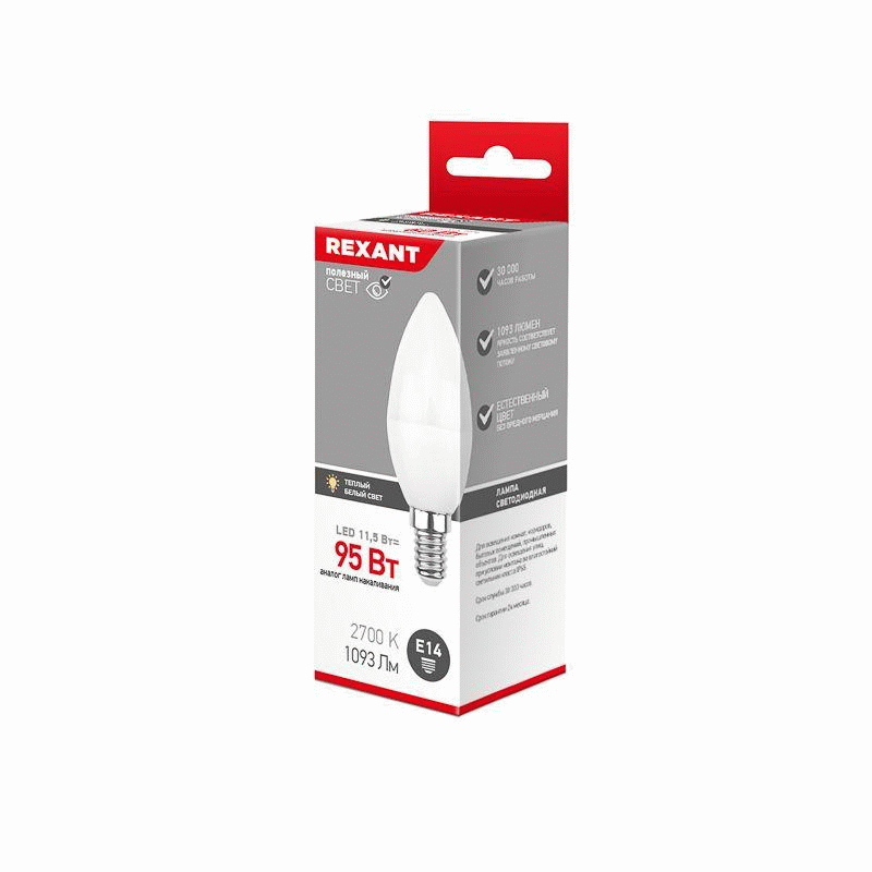 Лампа светодиодная REXANT Свеча CN 9.5 Вт E27 903 Лм 4000 K нейтральный свет (3 шт./уп.)