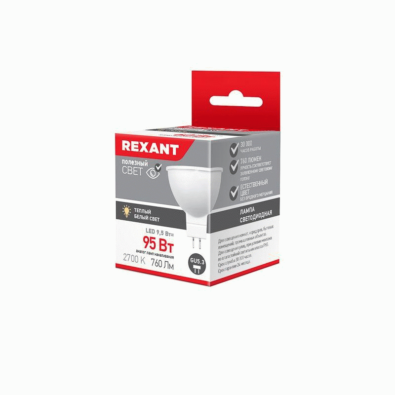Лампа светодиодная REXANT Свеча CN 9.5 Вт E27 903 Лм 2700 K теплый свет (3 шт./уп.)