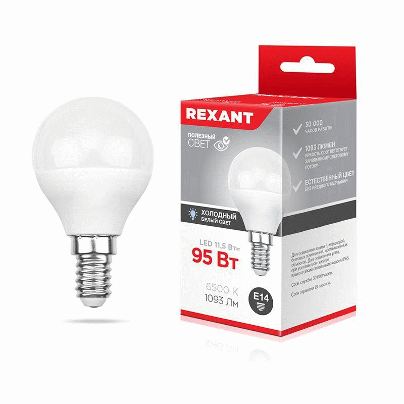 Лампа светодиодная REXANT Шарик (GL) 11.5 Вт E14 1093 Лм 6500 K холодный свет (3 шт./уп.)