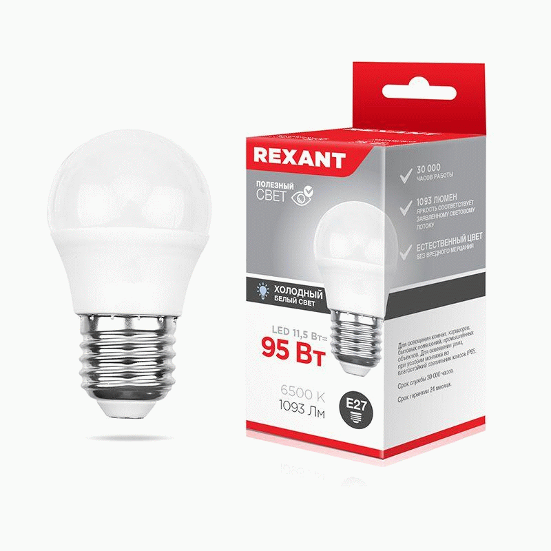 Лампа светодиодная REXANT Шарик (GL) 11.5 Вт E14 1093 Лм 4000 K нейтральный свет (3 шт./уп.)
