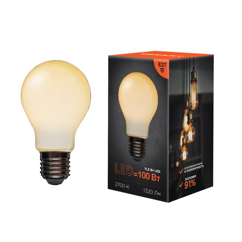 Лампа филаментная REXANT Груша A60 11.5 Вт 1320 Лм 2700K E27 матовая колба